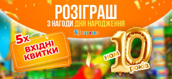 З нагоди Дня народження мережі сімейно-розважальних комплексів Fly Kids розігруємо 5 вхідних квитків.
